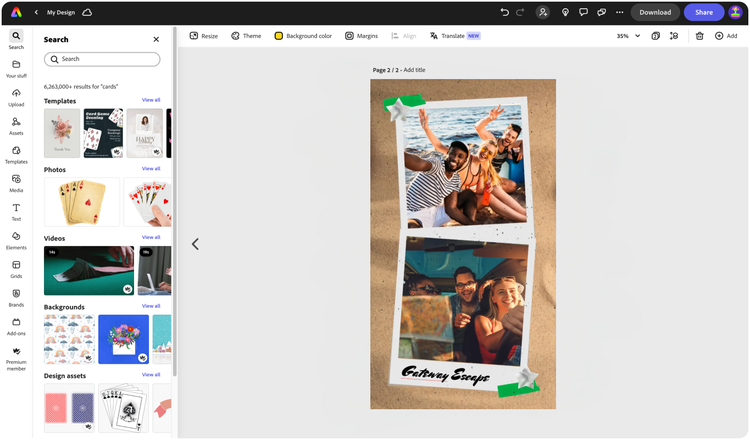 Add your own photos or videos and start your creation from there. You can also import your PSD or Ai files and Adobe Express will recognize all of your layers.