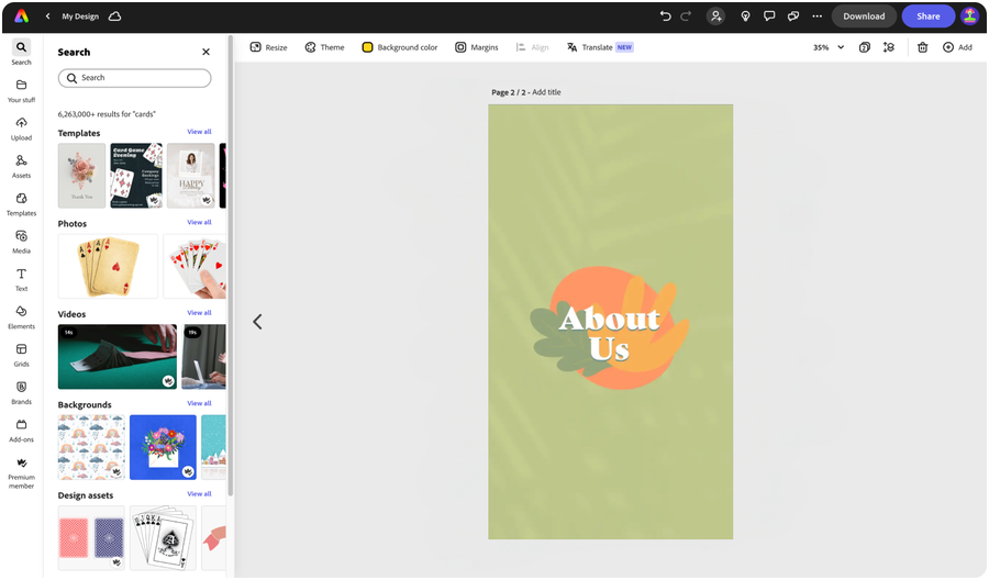 Add your own photos or videos and start your creation from there. You can also import your PSD or Ai files and Adobe Express will recognize all of your layers.
