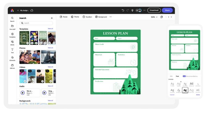 Explore professionally designed templates to get your wheels spinning or create your own timetable from scratch. Establish a theme for your designs using photos, icons, logos, personalized fonts, and other customizable elements to make them feel entirely authentic. With Adobe Express, it's free and easy to make, save, and share your designs within minutes.