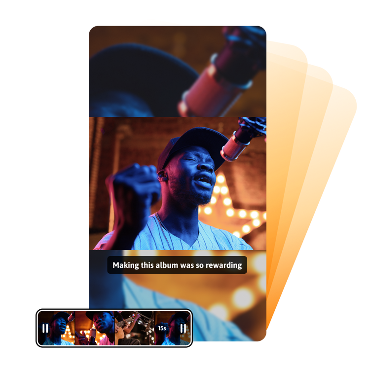 Turn your content into trending clips for TikTok in just minutes with Adobe Express. Just upload your video and watch as the best moments are combined into short, attention-grabbing TikTok clips. It’s quick and easy.