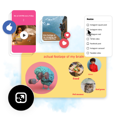 Instantly resize videos to share on all your favorite social channels.