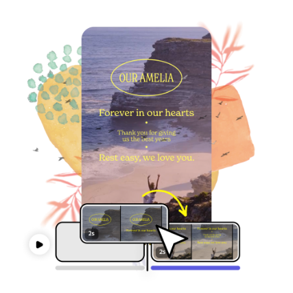 Turn your tribute video into a reel, story, square post, & more in one click.
