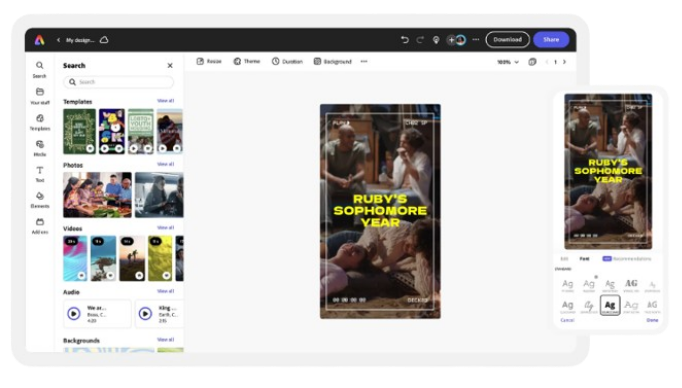 Once your tribute videos are complete, save your project within Adobe Express. Then, share your tributes with friends, family, and loved ones to commemorate special moments and celebrate cherished memories.
