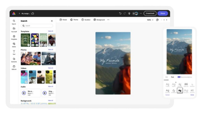 You can start your project from the Adobe Stock royalty-free photo, video, or audio collection.