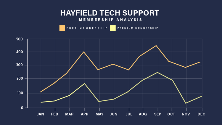Keep your visuals simple. Don’t try to squeeze in a ton of information in one chart just because you can. Using simple but deliberate design elements helps your audience focus on what matters most. Before adding new bits of information to your graph or chart, ask yourself if you really need to include additional labels, colors, and graphics.