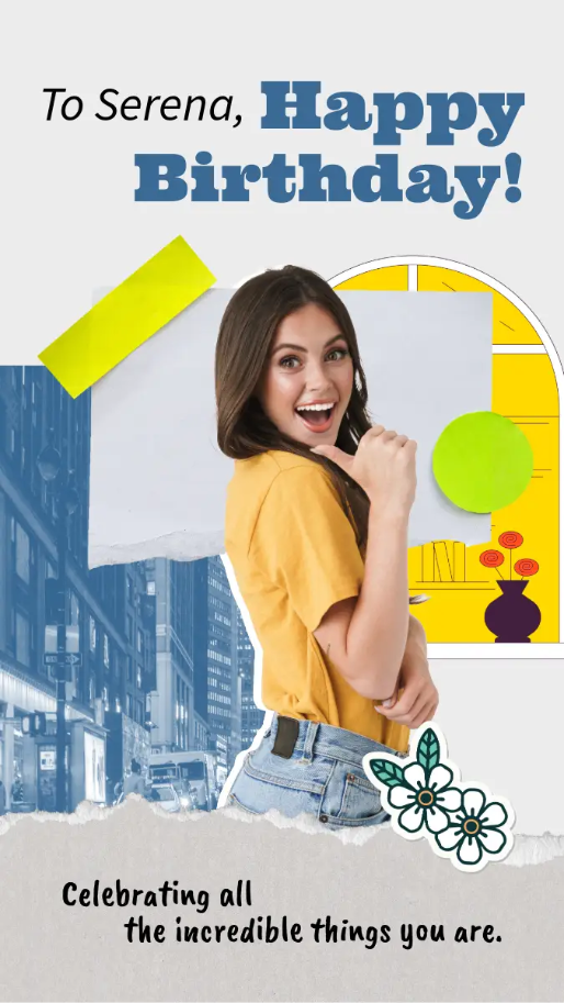 Try making a pastel-themed card with a punny message using the free card maker, or design a photo grid collage filled with your cutest growing-up pics. Add stickers, hearts, and bubbly fonts to match the mood.