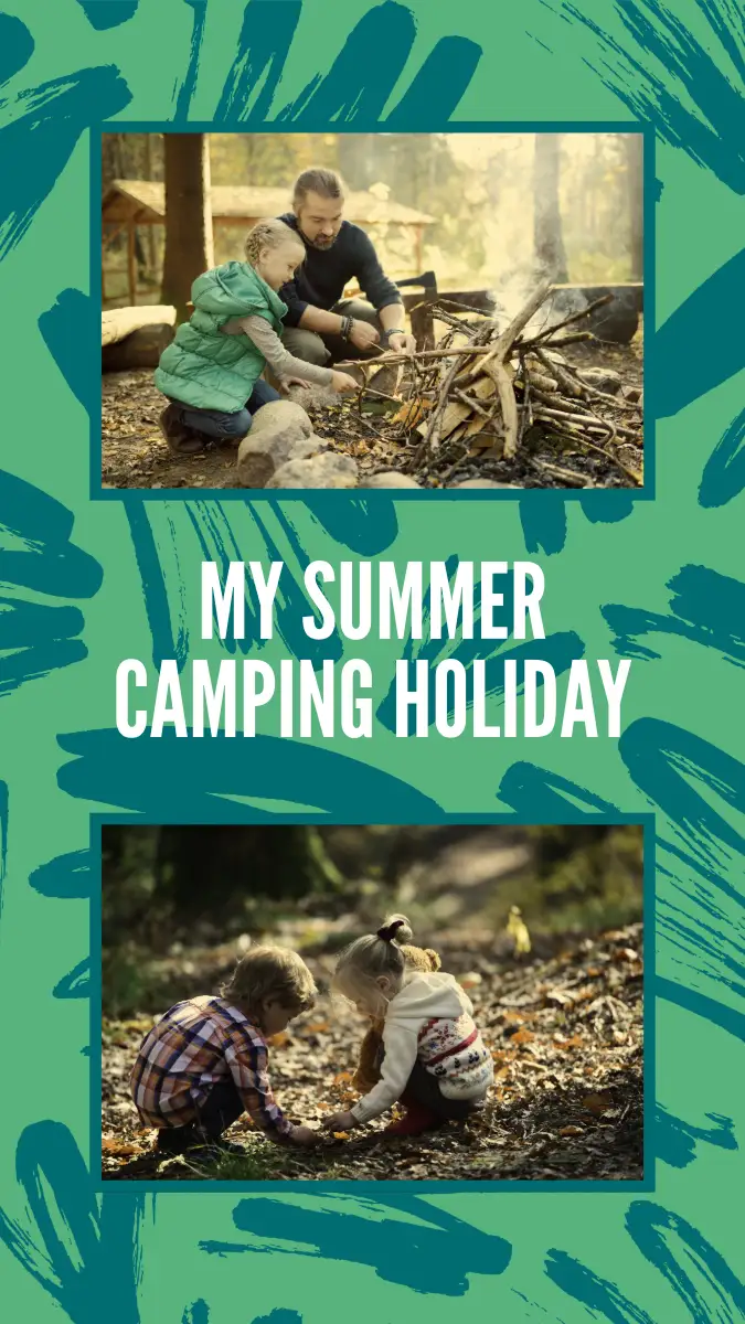You can also turn them into animated story slides for social media, where text appears with timed animation effects. Another idea is to remix a letter template into a sleek trip journal with camping captions acting as section titles.
