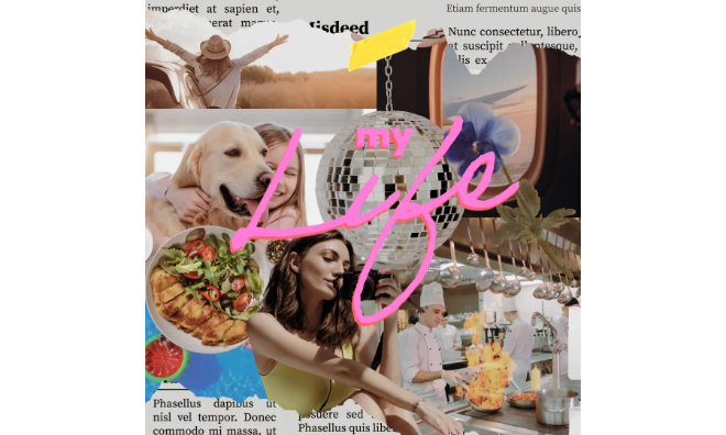 With Adobe Express, you can channel that sweetness into projects that last longer than a post. For example, try making a mini zine spread with doodle graphics and pastel text overlays, or design an adorable countdown graphic with animated icons for an upcoming trip.