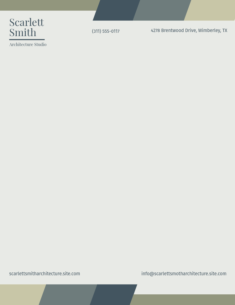 There are lots of ways you can go about picking your color palette with your letterhead design. You can use similar colors, such as pastels or earth tones, grayscale colors like black, white, and gray, or whatever your brand colors are, to name a few examples. If you get to choose a custom color palette, play with contrasting or complementary colors. Take a quick look at a color wheel to see how complementary colors make each other stand out. Adjust your header color, text, and contact details with these types of colors to make each item stand out next to the others.