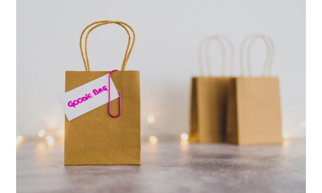Instead of giving out goodie bags in single-use plastic pouches, why not place your items inside mason jars or reusable water bottles? You can also use cloth drawstring bags made of scrap fabric to house your gifts.