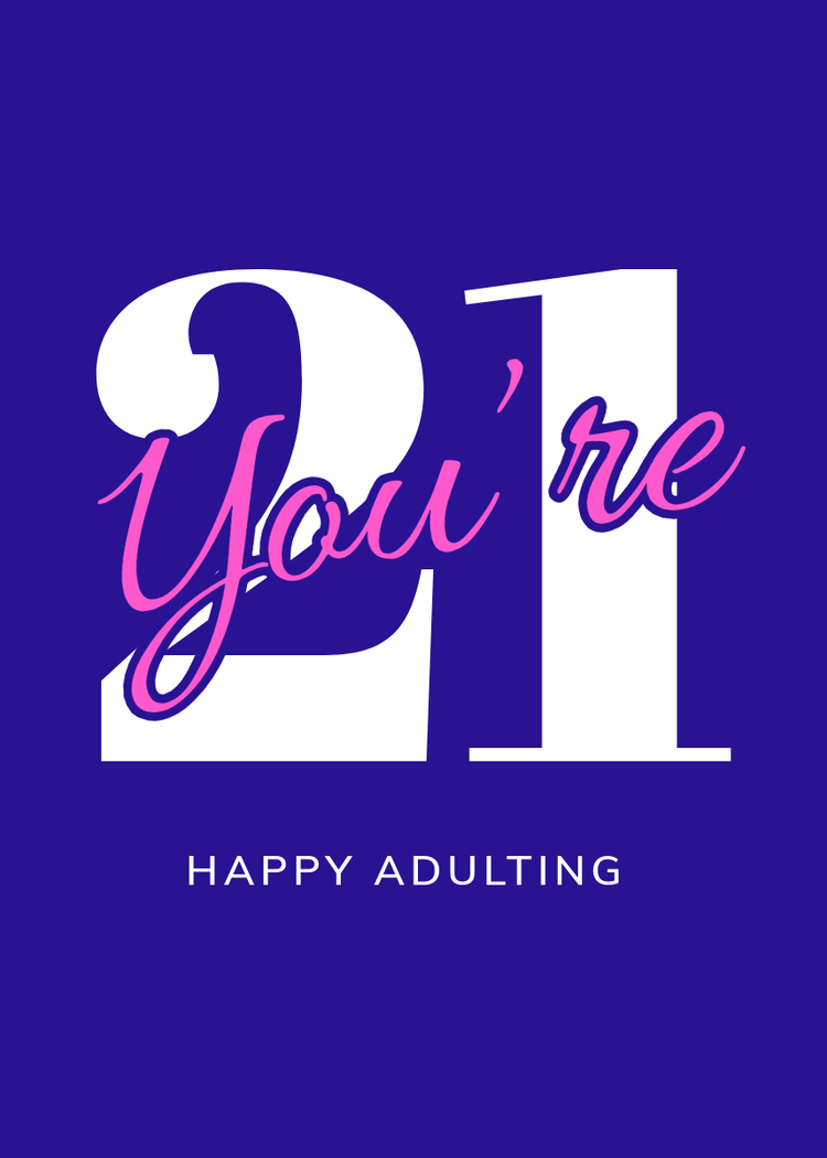 Make your own card with a list of what a 21-year-old can do listed out on the front, and a cheeky message inside, like, “congratulations, people will finally take you seriously now.”