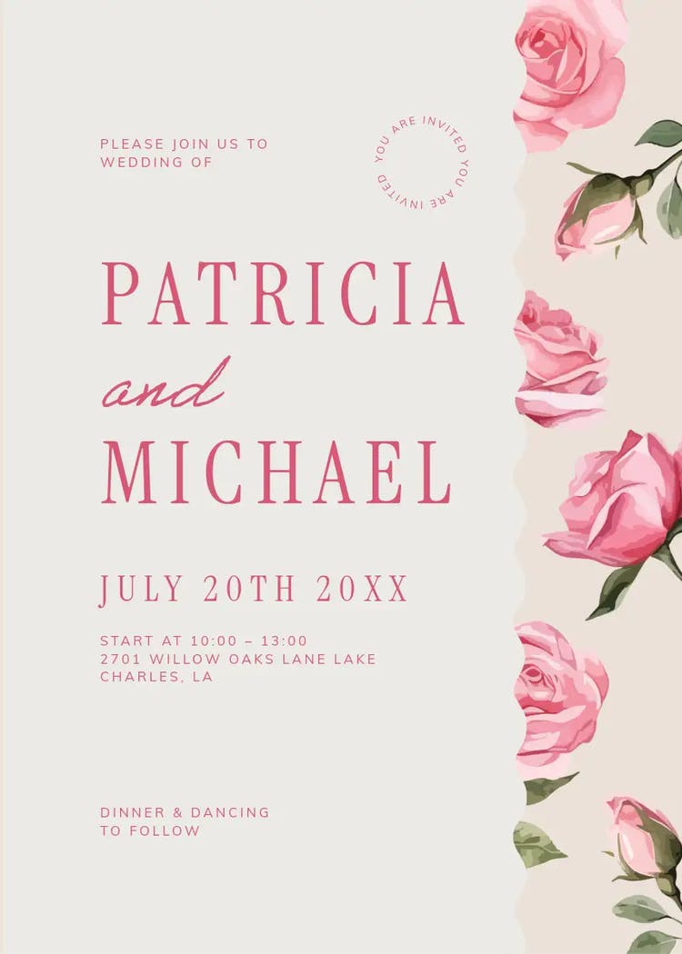 Adobe Express lets you turn your wedding invitation ideas into printable cards without having to start from scratch. You can start with a wedding invitation template to lock in your layout or build your own if you already have a format in mind. Card templates are easy to adjust when you’re working around fixed details or spacing. If you have more content, exploring the letter templates can give you room to organize sections without squeezing everything into one card.