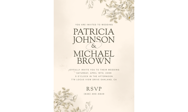 - Play with typographic weight and tension. For instance, your names are in a giant Serif font, and then all the other details are in micro-Sans-Serif with space between letters. The visual impact is a contrast between something loud (your names) and something whispered (details), creating a sophisticated, editorial hierarchy.