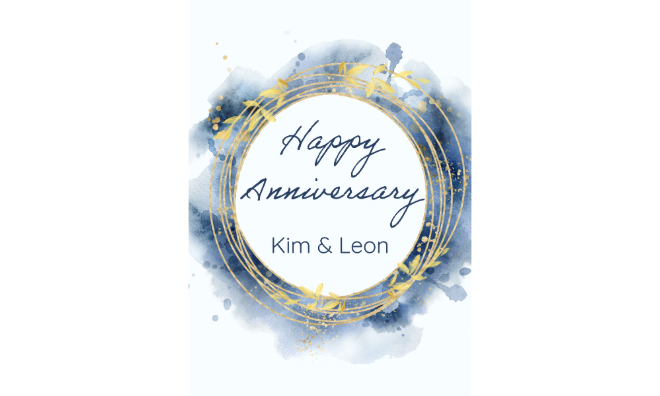 Add a personal touch to any anniversary-related creative project to make it truly unique and heartwarming. For example, include the couple’s photo (or its illustrated version) on the card’s front, along with inside jokes or specific references that reflect the couple’s relationship.