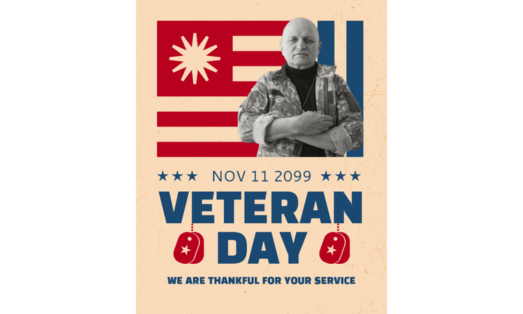 Make a heartwarming tribute by designing a series of cards that highlight individual veterans and their contributions. Add their portraits and your message. You can personalize each design to reflect their service branch. Then, rotate the designs on social media leading up to Veterans Day.