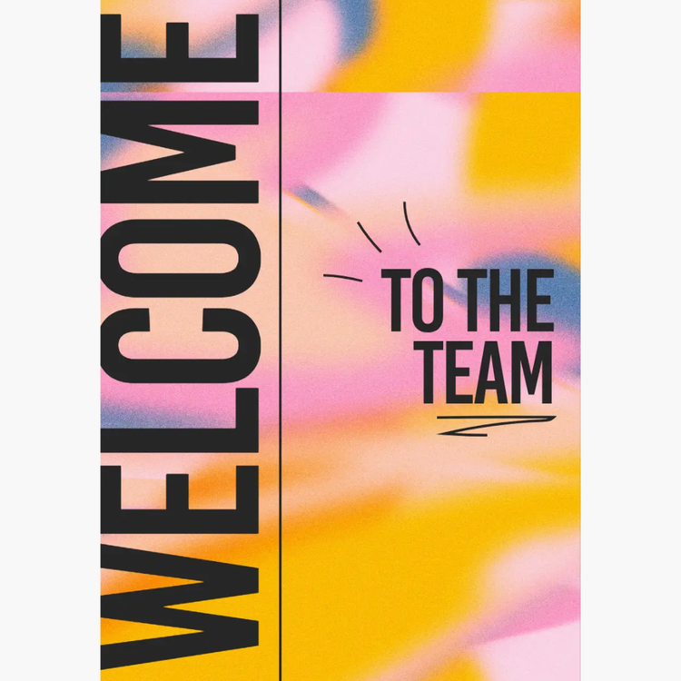 These welcome to the team messages are perfect for kicking off good vibes. Want to go the extra mile? Use Adobe Express to make a custom flyer with your brand colors, a team-themed digital card, or a cheesy “employee of the minute” poster because why not?