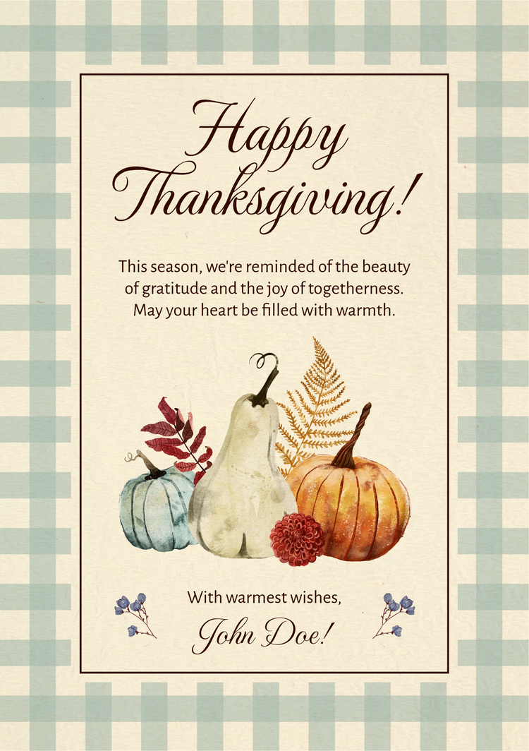 When sharing these Thanksgiving wishes with partners, clients, or employees, ensure that your design reflects professionalism, whether you’re making a card or a letter. It should also align with your brand identity. Use high-quality images, keep your design clean and your text readable.