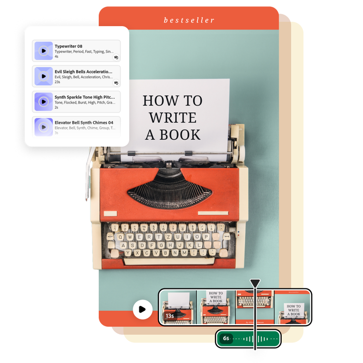 The Adobe Express create-anything app allows for full creative expression. Try using sound effects in projects beyond video. A bell sound effect could add an interactive touch to a presentation, animated e-card, and so much more.
