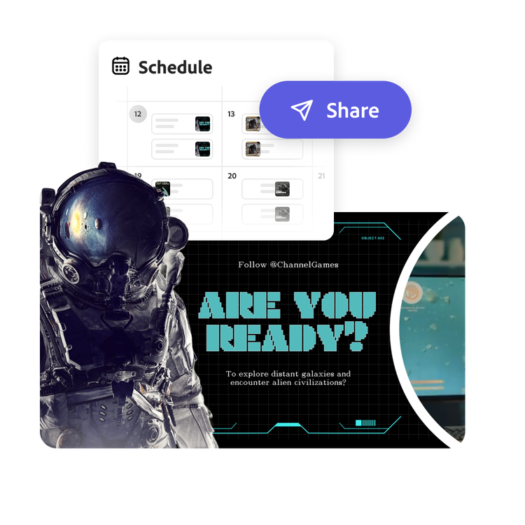 After you’ve selected your metal pipe sound effect and edited your video, it’s time to see how your audience will react. Download and share your new, polished video content on your favorite social channels. Or embed the MP3 onto a web page or in an email. Adobe Express makes it simple to share audio-edited videos just about everywhere.