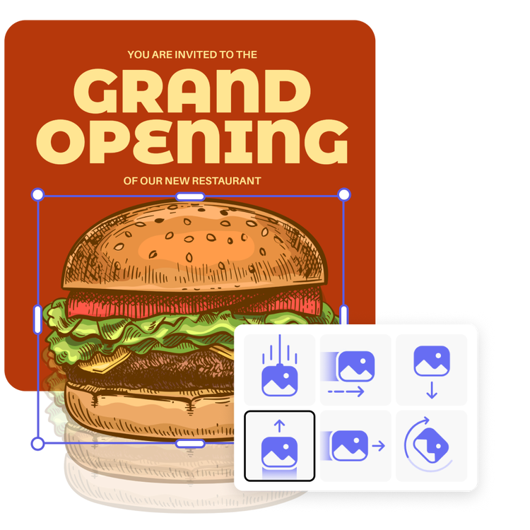 Adobe Express gives you the ability to edit clipart and make it what you need. Change the element’s color, size, and position on the canvas. Play with the blending and reduce the opacity to create a watermark effect. And for digital projects like presentations and social posts, easily add animation to your clipart. The possibilities are endless.