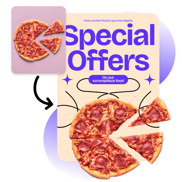 After uploading your GIF, you have full access to all the creative power of Adobe Express to create an eye-catching image. Easily remove the background, add colorful text, or incorporate your brand colors. By converting to a PNG in Adobe Express, the quick and easy create-anything app, you get access to tons of editing tools and templates.