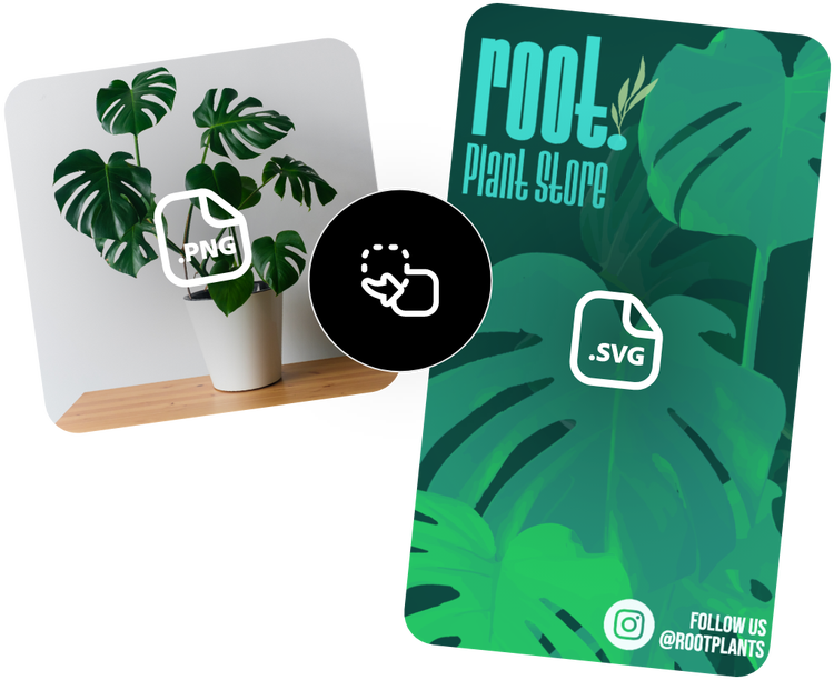 The Adobe Express vector file converter allows you to make impressive edits on the go. Easily upload a PNG image right from your device to convert it to SVG in seconds. Instantly download your new SVG and you’re ready to go — share it with friends or followers or use it in a future project.