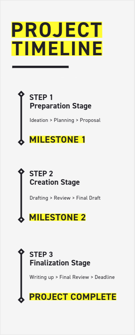 When structuring a timeline, consider adding a title or details about the subject that indicates what you’ll be covering, events, milestones, significant dates, and the individuals involved. This is a prime context in which specificity can only help you in your goals.