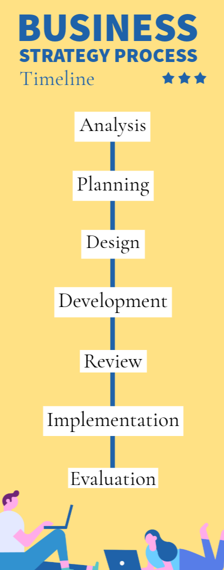Strategic timelines are timelines that cover a time period outlined by a company’s strategic plan. Depending on the overall goal or directive that you and your team are working toward, the timeline can be organized in the direction of that goal, with tasks and time windows stacked advantageously with this overall plan in mind.