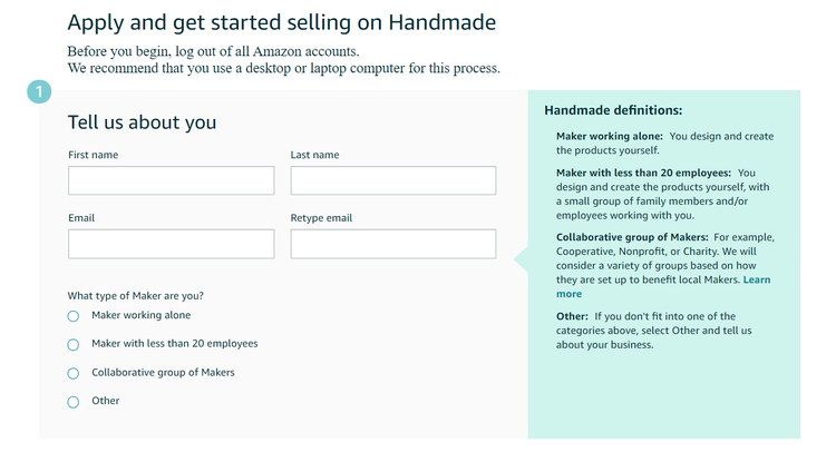 1. Apply to Sell on Amazon Handmade