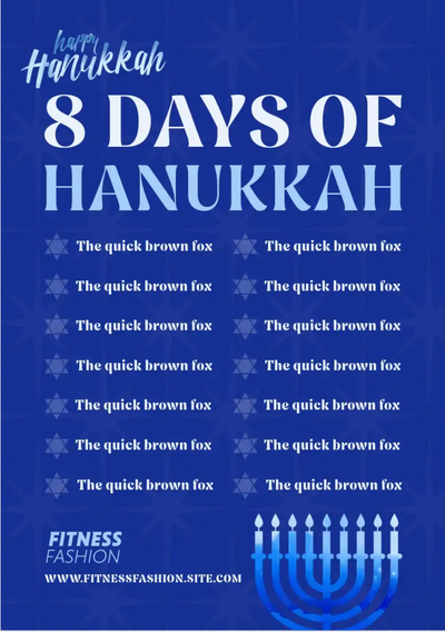 Hanukkah is a Jewish festival commemorating the recovery of Jerusalem and subsequent rededication of the Second Temple at the beginning of the Maccabean Revolt against the Seleucid Empire in the 2nd Century. Join in the festivities with our range of templates in Adobe Express.