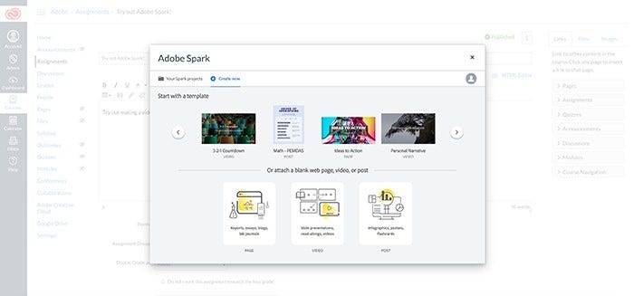 Millions of K-12 and higher education students and educators use the Canvas Learning Management System (LMS) to communicate about classwork and assignments. And now, at schools that have Adobe Spark licenses, everyone can access Adobe Spark and Creative Cloud from right inside Canvas.
