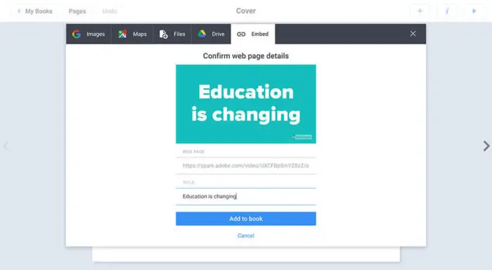 Educators and students can use Book Creator to build interactive, multimedia books by combining text, audio, video, and images. Now you can embed Spark projects directly into the pages of your book just by adding in the project URL. This makes your book even more creative and engaging! Learn more about our integration with Book Creator.