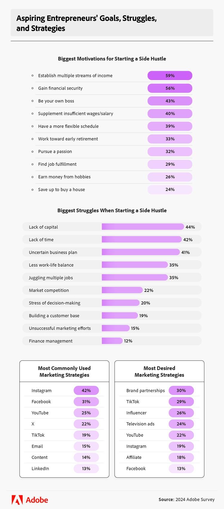 Next, we’ll explore the most common motivations for side hustling and shed light on the struggles and marketing strategies of new entrepreneurs in the U.S..