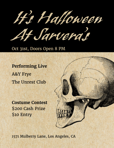 Sometimes, a flyer is more appropriate to get the word out about your Halloween party, costume contest, haunted house, festival, or trick-or-treating gathering. Adobe Express has a bunch of free Halloween flyer templates that you customize for whatever fun Halloween event you or your kid’s school is planning.