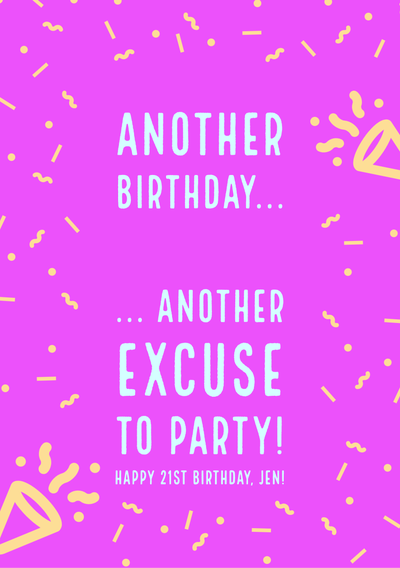 To help you create cards for future joyous occasions, we’ve put together some ideas for how you can add levity to a loved one’s birthday. Birthday card jokes, food and drink puns, and poetic devices can all bring a smile to someone’s face on their big day, so try one of our funny birthday card ideas below and see what sticks for you.