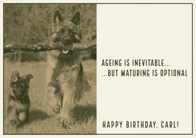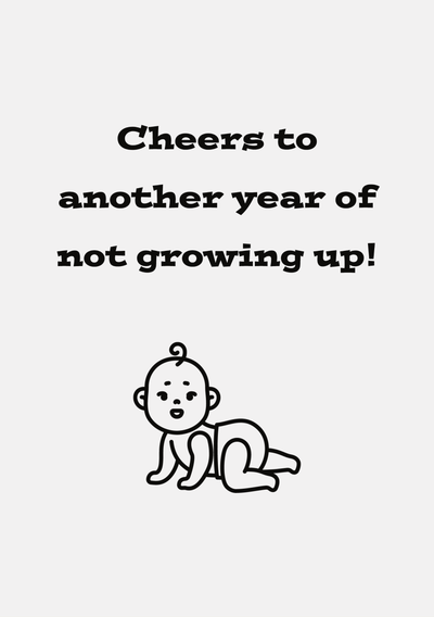 Another birthday, another year older. Don’t you think it’s about time we started to act our age? Well, I know exactly what you’ll say. Next year. Happy birthday.