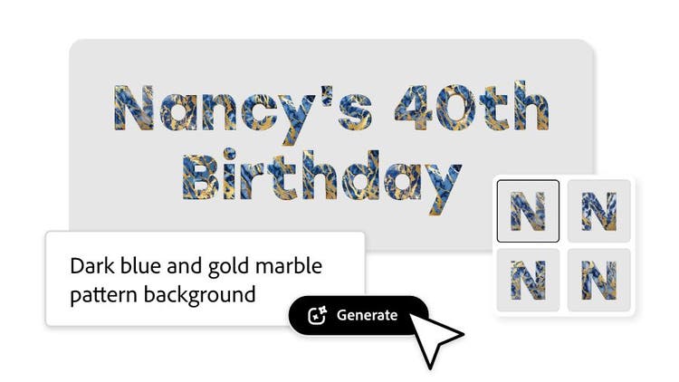 Cards & Invitations: Spruce up your next party physical or digital party invitation with unique header text amplified with Text Effects. For example, make your next flyer extra-refined with a header that uses the Text Effect prompt: “dark blue and gold marble pattern background”.