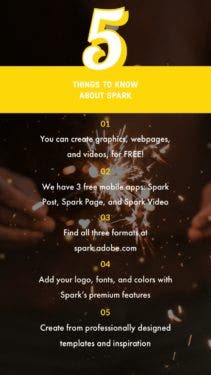 Pro-tip: If you have a lot of information to communicate such as the list above, consider having the design build on itself as the user taps through your Story. It will make for an easier reading experience and keep followers engaged and tapping. To do this, start by building the final design in Adobe Express and saving it to your camera roll. This will be your last share. Then use the duplicate button and remove one aspect of the design and save that image to your camera roll. Continue this process until you’ve broken your design into bite-sized pieces and post them in order to your Story.