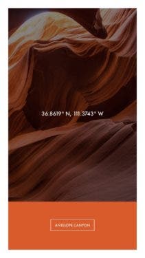 Want to showcase your travel photography? Launching a new product? Showcasing your cooking adventures? Create a visual theme for these endeavors to connect them all and save you time! Take the series below as an example, which uses the same layout and concept for each design, but the color changes to complement the photo and place. The result is a visually arresting experience your viewers will love to tap through and an easy way for you to share your photos in a cool way.