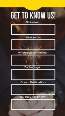 Use this “This or That” template to create a fun game between you and your followers by editing the copy in each section. Then use Instagram’s native drawing abilities to make your selection. Encourage your audience to join in the fun by sharing a remixable copy of the design you create. In Adobe Express, tap “share” on your finished design and then “create remix copy.” This will generate a link to a copy of your design that your audience can edit with their own This or That options. If your account has the ability to add links to your Stories, you can use the swipe up feature to share the link. Encourage your followers to tag you in their own stories to boost engagement and conversation.