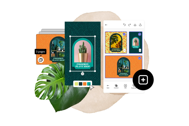 Easily reuse text, photos, and other design elements by copying and pasting assets between pages in your project or images from the web. Tap the ‘view all’ icon to review your project as a whole, apply color changes to multiple pages at once, and reorder, delete, or duplicate pages. When you’re done, export all pages or just a selection.