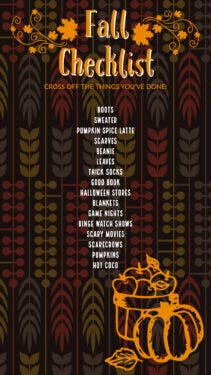 Engage followers with seasonal IG stories. Instagram Stories boost engagement and encourage friends and followers interact with your brand. And once you add pumpkins to the mix, well, these seasonal templates spark extra IG interest. Advertise a retail event or provide value to your tribe with a design rich fall checklist. Use these pumpkin-themed templates as is, or customize them to showcase anything from your favorite sweater-weather rom-com movies to a silly jack-o-lantern meme.