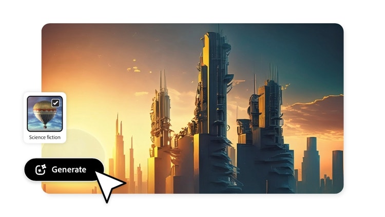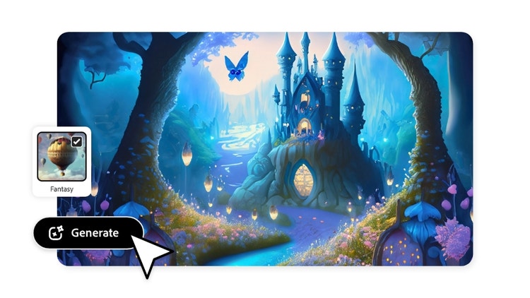 Now that Adobe Firefly is a part of Adobe Express, a simple text prompt opens endless possibilities to create dazzling scenes, views, and imagined environments to use in marketing materials like posters, banners, social posts, and so much more. It’s your imagination in overdrive, and there’s no limit to the worlds you can create and what you can do with them.