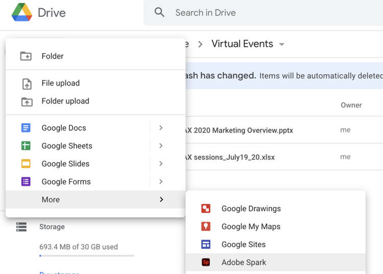 Create new Adobe Express projects from within Google Drive