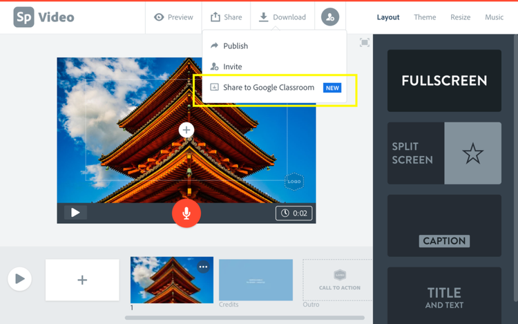 Now it’s faster and easier for all students and teachers who use both Adobe Express and Google Classroom to share Adobe Express projects to their Google Workspace for Education accounts. In the past, students and teachers could only publish Adobe Express projects with school administrative approvals. Thanks to an integration expansion, every student can now skip unnecessary file downloads and uploads and seamlessly send their files to Google Classroom. For example, after a student uses Adobe Express to create a poster for their Spanish class, they can go to the Share menu, choose Google Classroom, and attach the Adobe Express file directly to a Google Classroom assignment for their teacher to view and grade. And they can do it all without having to create a public link for the project at any time.
