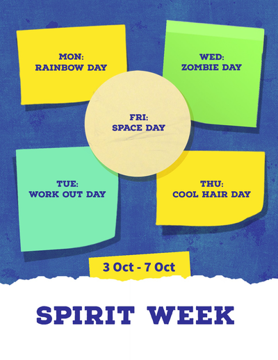 To ensure maximum participation, it’s important to get the word out about spirit weeks by creating flyers to hand out to students and put up in hallways and classrooms. Read on to get five great ideas for a virtual or in-person spirit week that boosts school spirit any time of year.