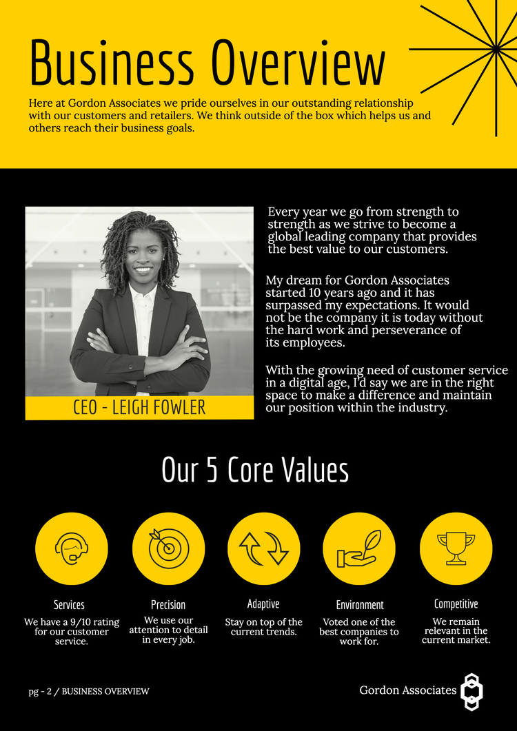- An introduction to your company and background information on the project