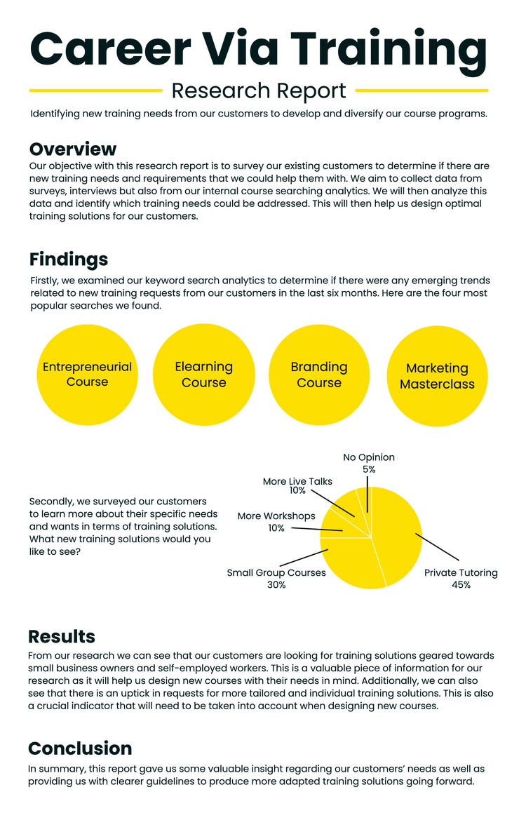 Executive summaries begin with a concise encapsulation of the subject matter of your business letter or proposal. This summary should always contain the key takeaways and main ideas of your communication piece. The contents of an executive summary should always be entirely understandable and accessible to a non-technical audience.