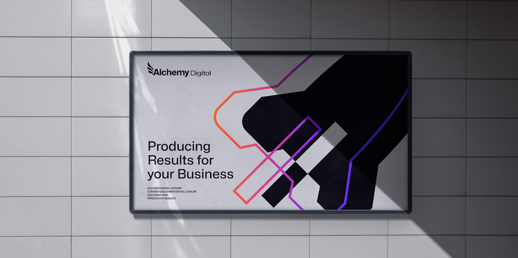 Examples of brochures, graphic sweatshirts, and posters: Alchemy Digital