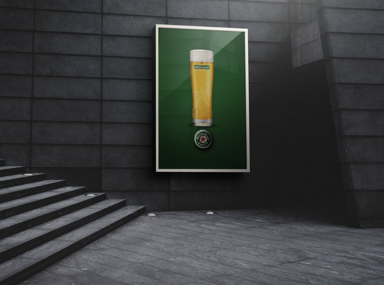 Examples of print magazine ads, signage, posters, and billboards: Heineken